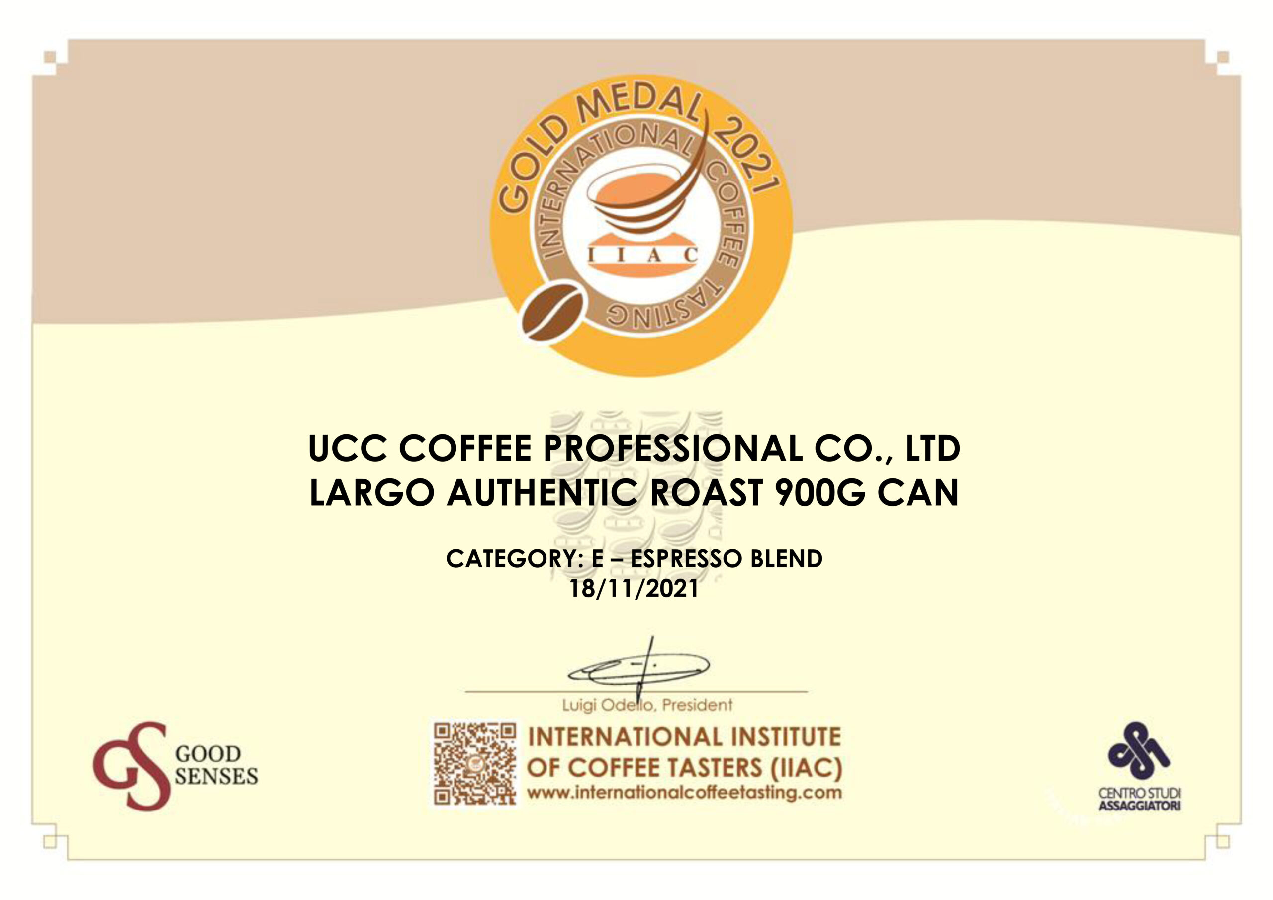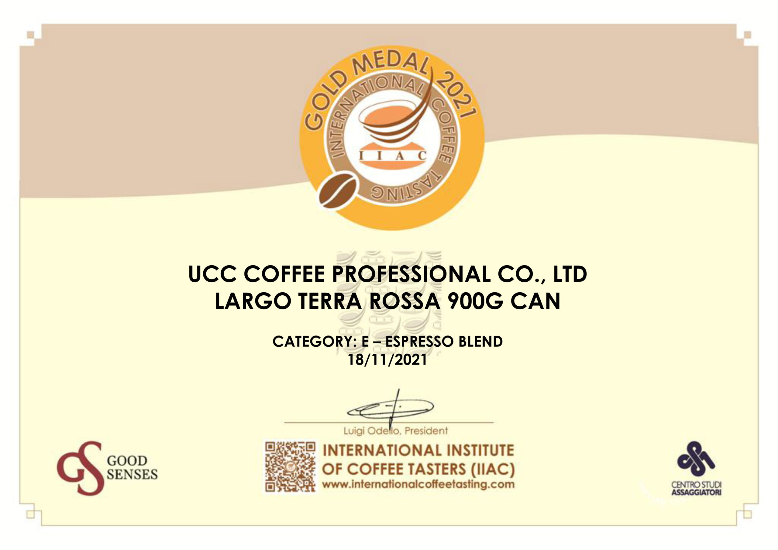 今回初めての出品となりましたが、「Largo/ラルゴ」シリーズの中から「オーセンティック」「テラロッサ」「チェーロブル」の3種類で金賞を受賞することができ、大変嬉しく思います。